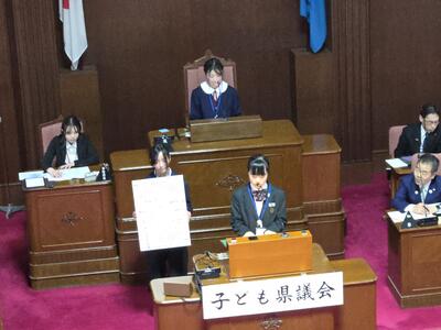 滋賀県子ども県議会に本校の生徒が登壇しました。