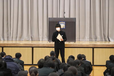 最後に生徒会長から「チャレンジする3学期」ということで、3つの提案がされました。