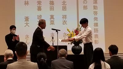 本校の林蒼大さんがあいさつ標語で優秀賞を受賞しました。