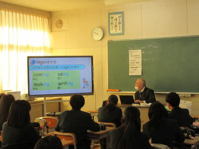 まずは現在進行形の復習をしました。ingをつけるだけのものもありますが、少し変形してingをつけるものもあり、各自の復習も大事ですね。