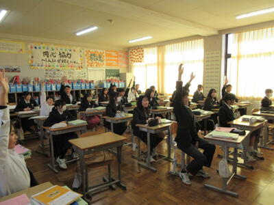 田邉先生の授業は、学習内容以外に、ちょっとした雑学にも触れ、楽しい雰囲気で授業が進んでいました。