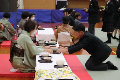 茶道教室開催 投稿: 大東中学校 (08:11) カテゴリー: 今日の出来事 地域の方にお世話になり1年生で茶道教室を開催しました。 私は参加できませんでしたが、画像を見る限り、日本の伝統文化をしっかり学んだようです。 ちなみに、本校では校長室へ来ていたたいた方にも、お抹茶を点ててお出ししています。 校長室へもどうぞお立ち寄りください。 Tweet -