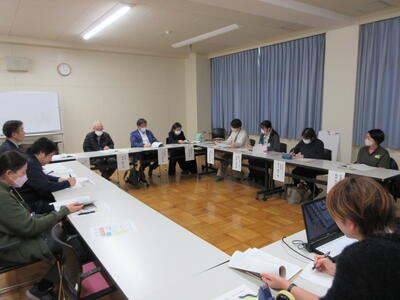 学校医、学校歯科医、学校薬剤師、健康づくり課、給食センター、保護者代表にきていただき、生徒の健康状態や運動データから議論しました。