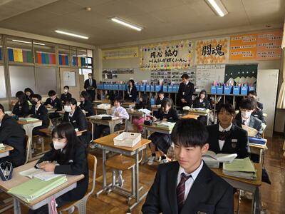 米原市角田市長が来られました 投稿: 大東中学校 (11:13) カテゴリー: 今日の出来事 米原市の角田市長が訪問されました。 一時間目の様子をご覧になり、校長室で意見交換させてもらいました。 まず、施設設備の不備を聴いていただきました。 また、本校の生徒会活動や学力向上の取組に大変興味を持ってくださいました。 Tweet -